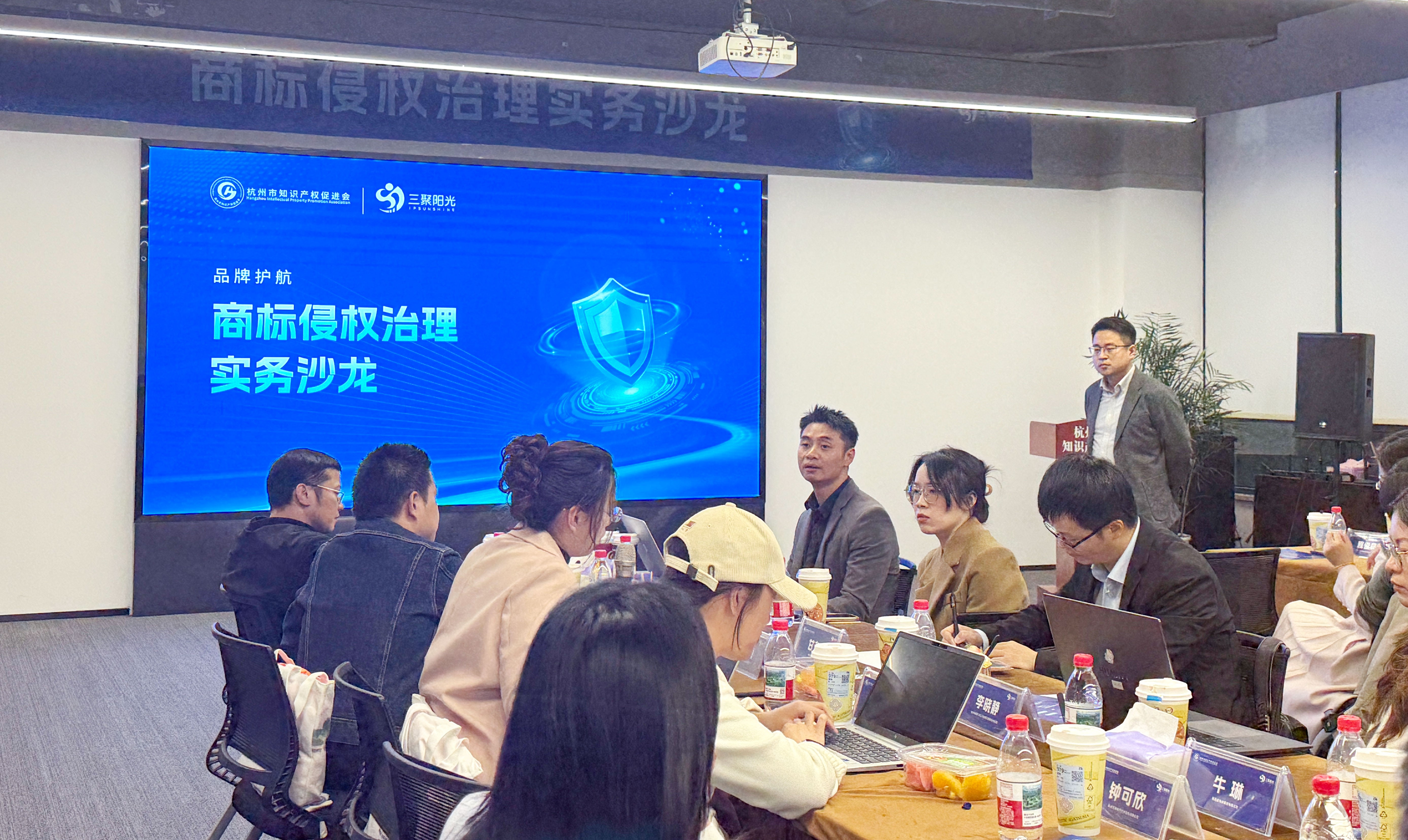 近日,由浙江省知識產權保護中心、杭州高新區(qū)(濱江)市場監(jiān)督管理局指導,杭州市知識產權促進會、浙江省中小企業(yè)協(xié)會知識產權專委會主辦,三聚陽光承辦的“品牌護航 商標侵權治理實務沙龍”在杭州順利舉辦。浙江省知識產權保護中心服務發(fā)展部部長張晉茂,杭州市知識產權促進會秘書長、杭州市知識產權交易服務中心總經理程俊良受邀出席,三聚陽光浙江區(qū)副總經理張鳴主持沙龍。