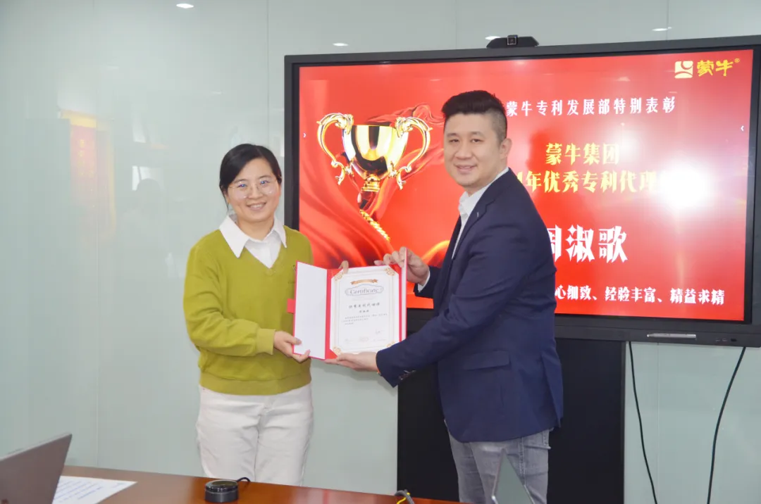 1月2日,蒙牛集團全球研發(fā)創(chuàng)新中心專利發(fā)展部總監(jiān)何萬興博士一行到訪三聚陽光,授予三聚陽光“最佳專利代理伙伴”榮譽,頒發(fā)“2024年專利卓越商務(wù)運營官”榮譽給三聚陽光常務(wù)副總裁李敏,并頒發(fā)“專利商務(wù)達人”“優(yōu)秀專利代理師”榮譽給多位代理師,以表彰三聚陽光在專利代理和商務(wù)運營中的卓越表現(xiàn)。
